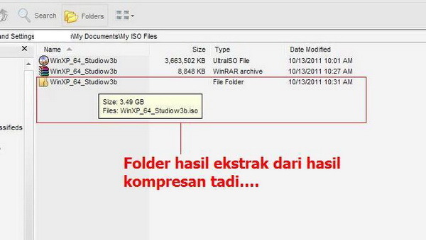 1. Siapin file yang mau dikompres. Disini ane pilih file iso dari opearting system winxp_64bit yang ukurannya sekitar 3.6gb.